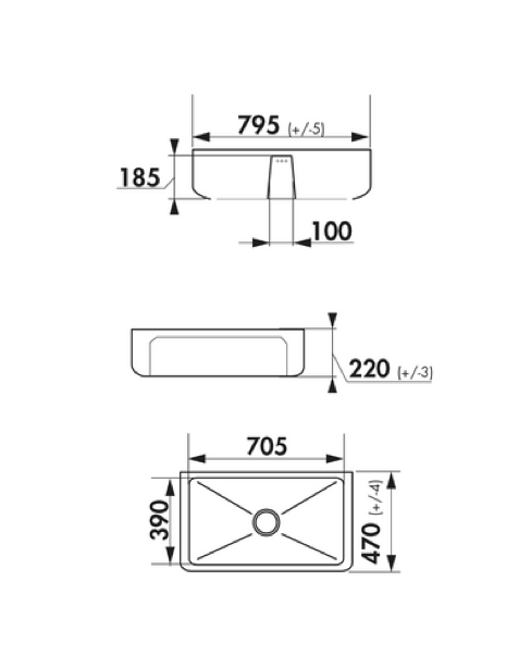Dimensiones (mm): 795 L. x 470 Anc. x D 220 P.
