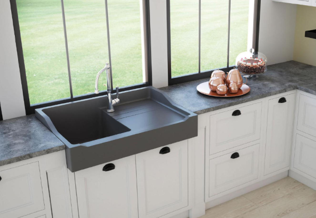 Fregadero de cocina fabricada en granito, de una cubeta, de estilo vintage ,de Chambord Tres acabados posibles: blanco, negro y gris titanio