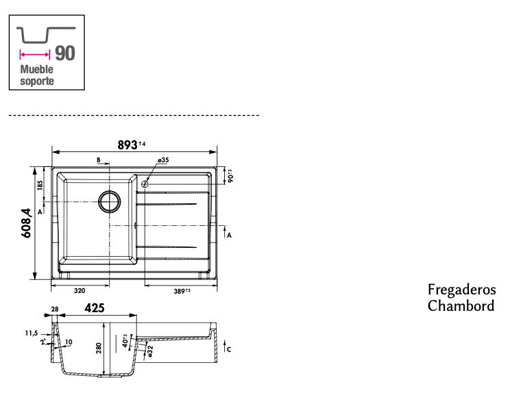 medidas fregadero con escurridor François Luisigranit