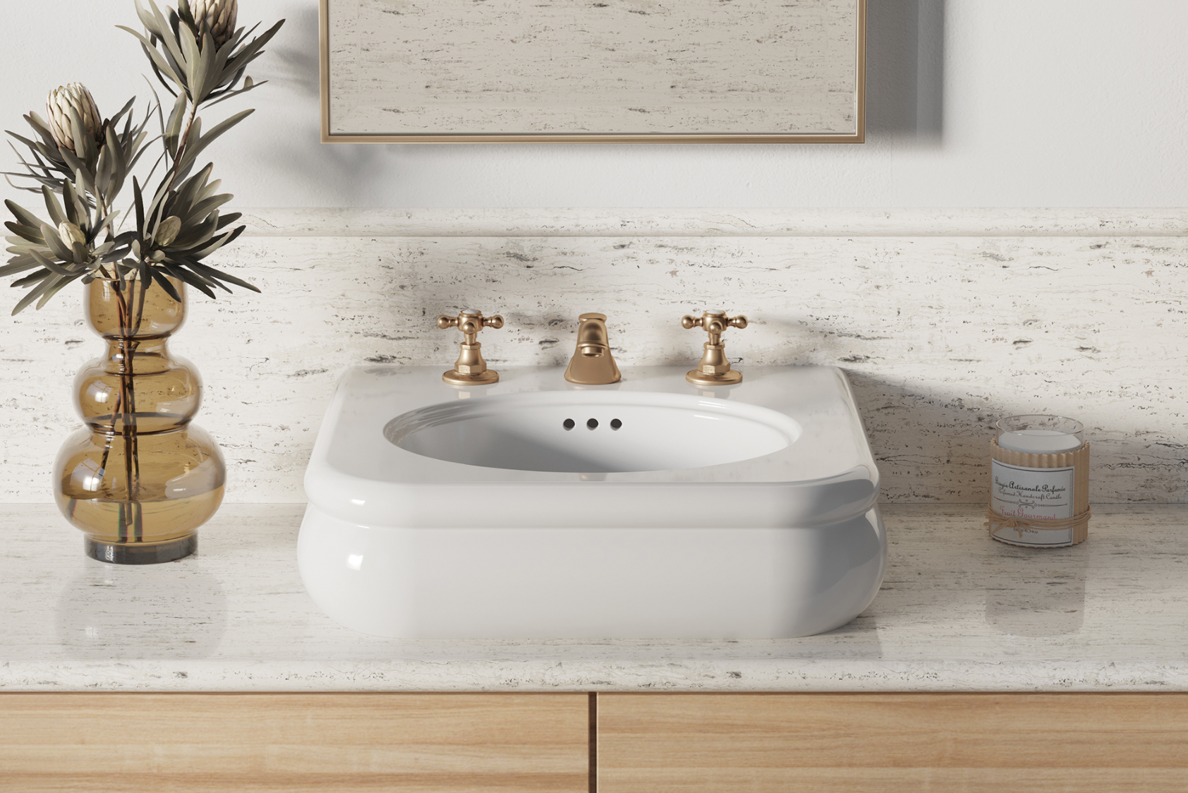 El lavabo cerámica pequeño Romántica ofrece un diseño vintage refinado, ideal para espacios reducidos. Su estructura en cerámica de alta calidad combina durabilidad con un estilo clásico y elegante